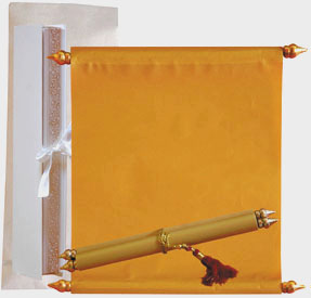 For occasions as special as a wedding,introducing a range of exquisitely scroll invitation,in soft golden yellow main invitation with perfect color combinations as matching thin box envelope in pearl base golden color and border with foil stamping on all the sides.Making a most precious invitation for you to select sets the standards of performance and expressions. |
